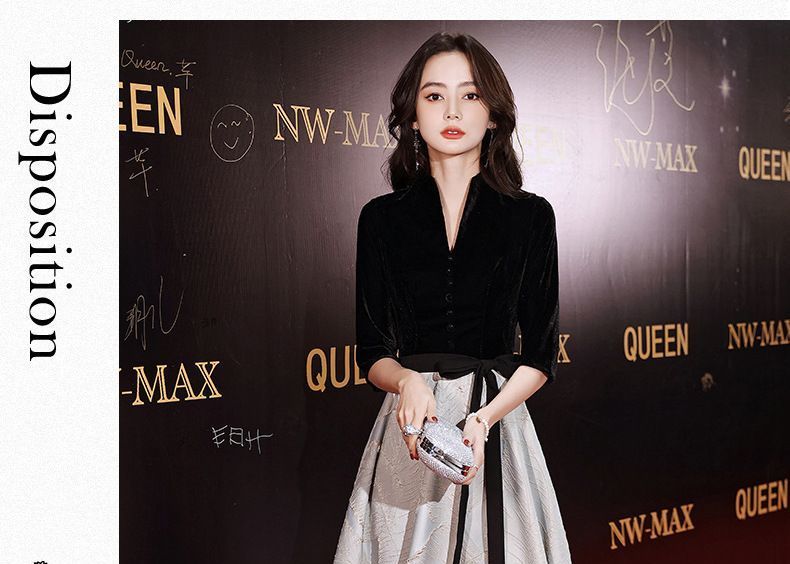 Short-Sleeve Velvet Panel A-Line Cocktail Dress