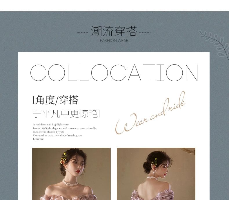 Off Shoulder Ruffle Trim Floral Print A-Line Evening Gown