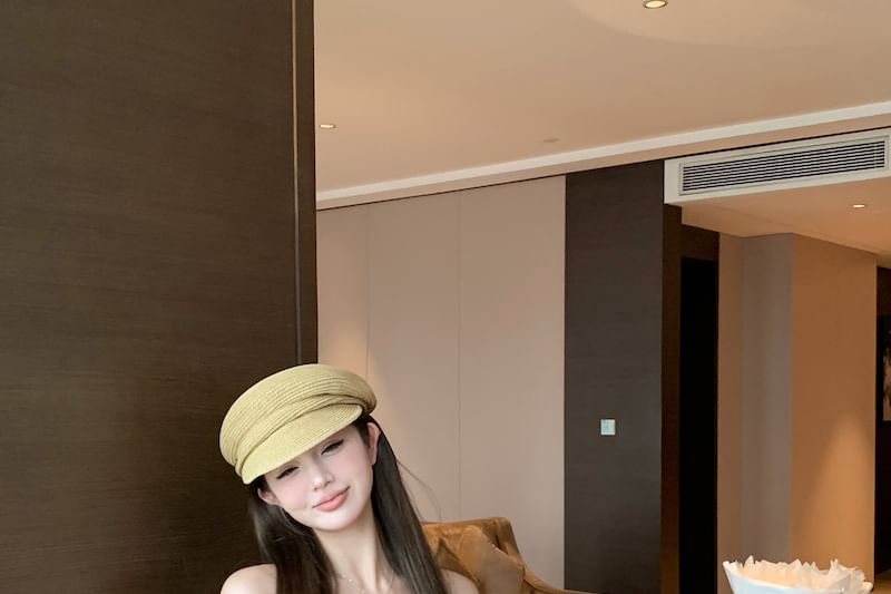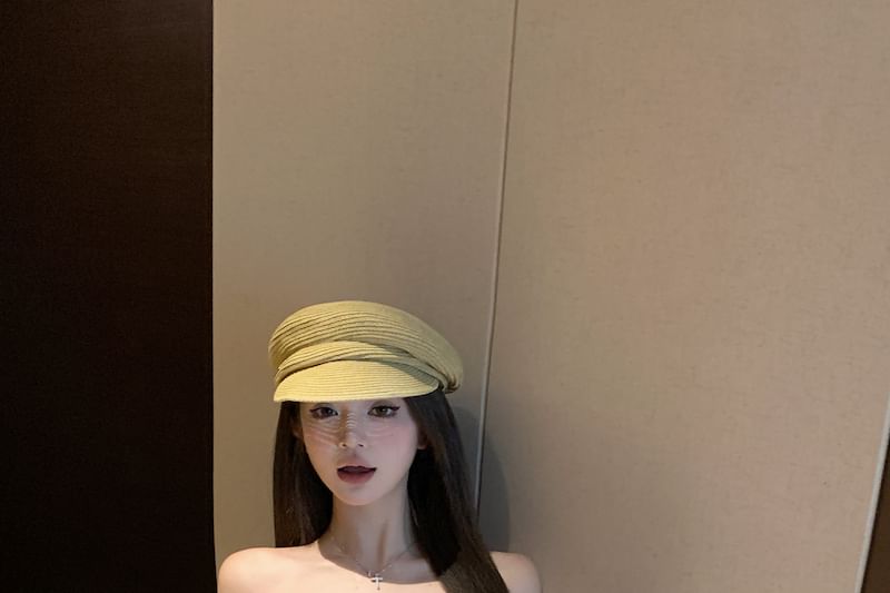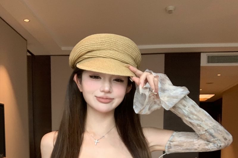 Shoulder Top Crop Floral Long-Sleeve Off Print