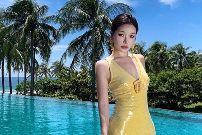 Sleeveless V-Neck Plain Sequin Sheath Evening Gown
