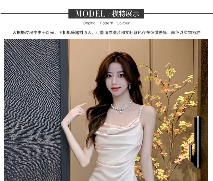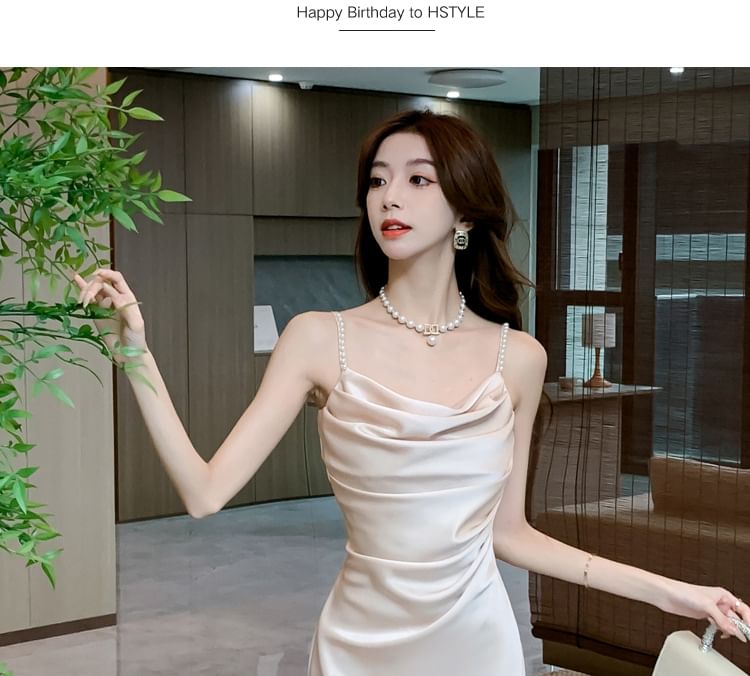 Spaghetti Strap Cowl Neck Slit Party Midi Dress