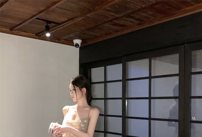 Strap Dress Spaghetti Maxi A-Line Sequin