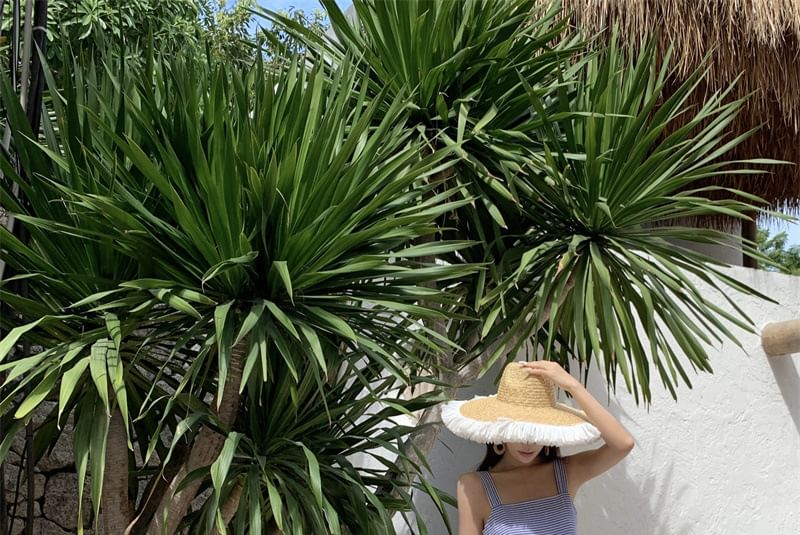 Striped Dress Square Ruffle Strap Spaghetti Sun Neck Maxi