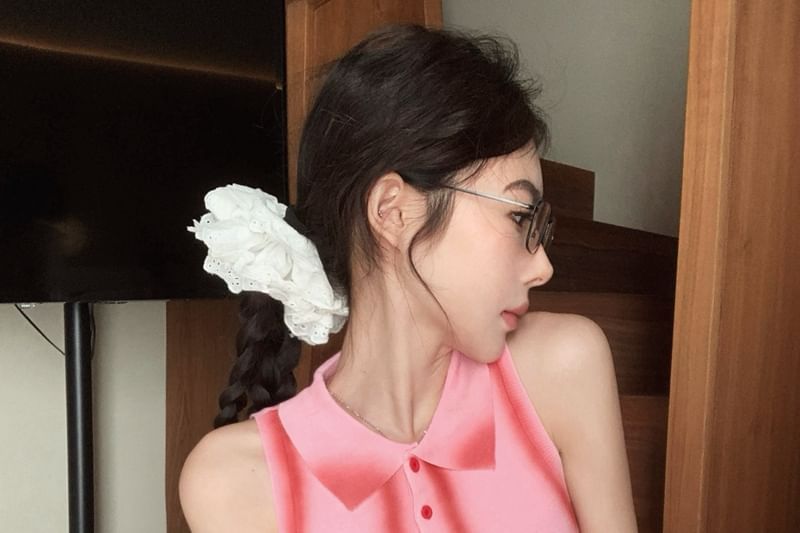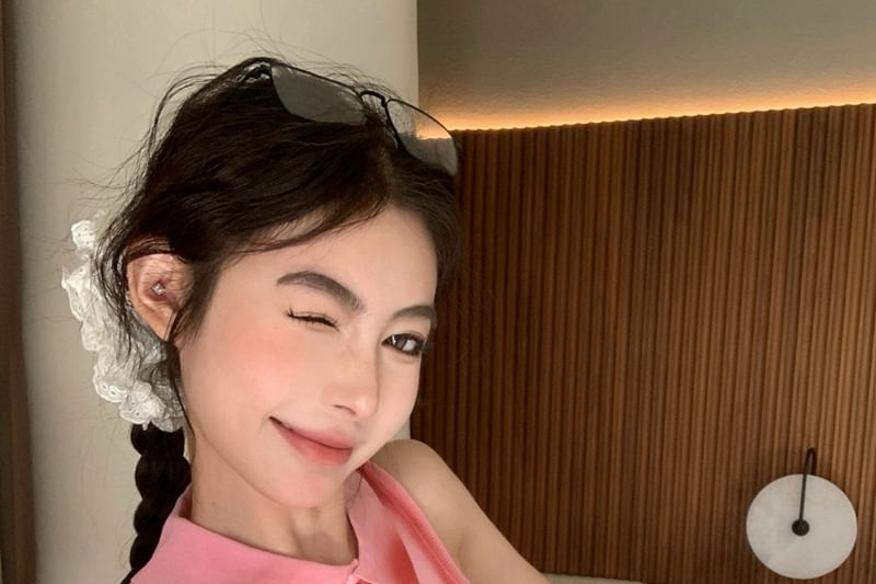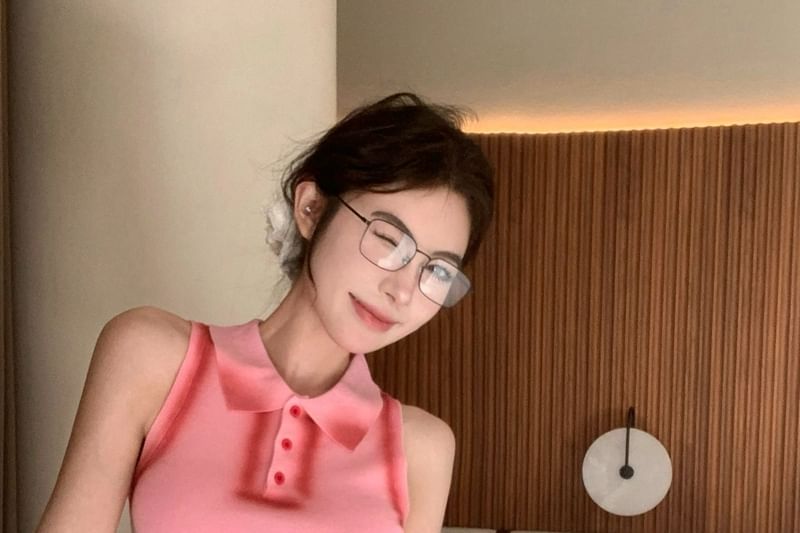 Collar Henley Contrast Trim Crop Slim Fit Tank Top