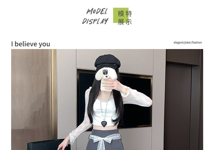 High Waist Lace Panel Skort