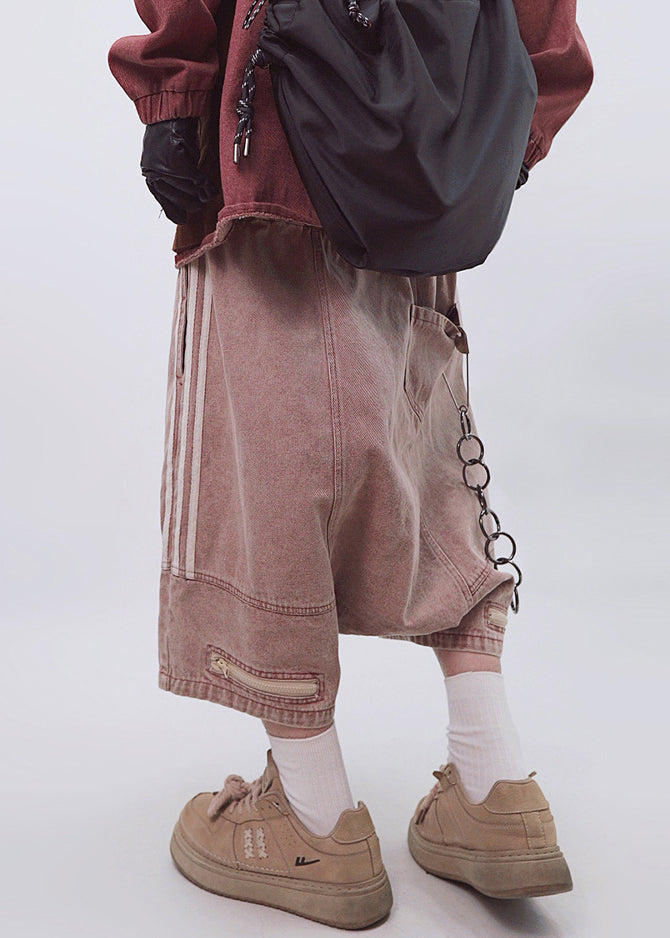 Zippered Shorts Dark Elastic Plus Waist Men Summer Striped Gray Size