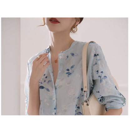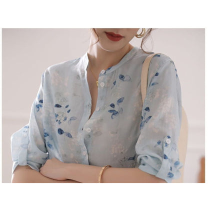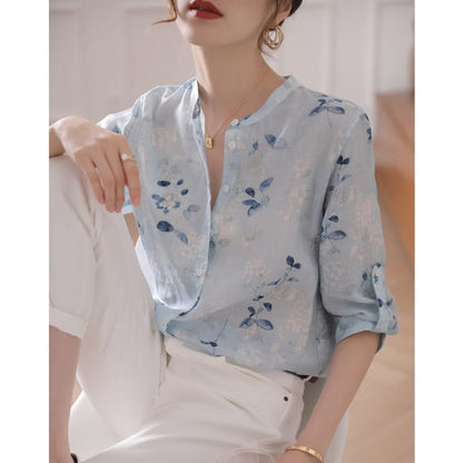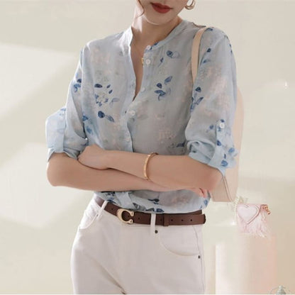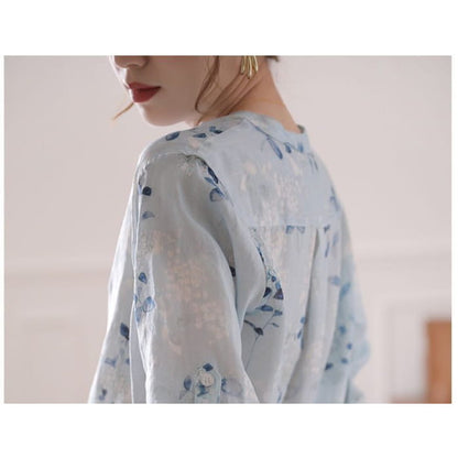 3/4 Sleeve Floral Print Blouse