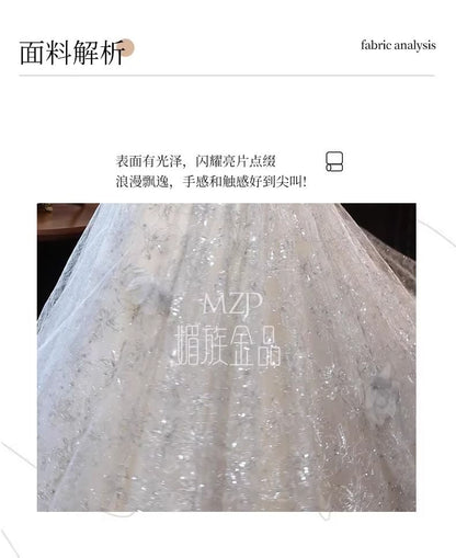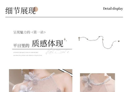 Sleeveless Round Neck Floral Patterned Faux Pearl Mesh A-Line Evening Gown