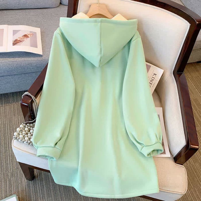Aesthetic Embroidery Buckle Plush Hoooded Sweatshirt Dress