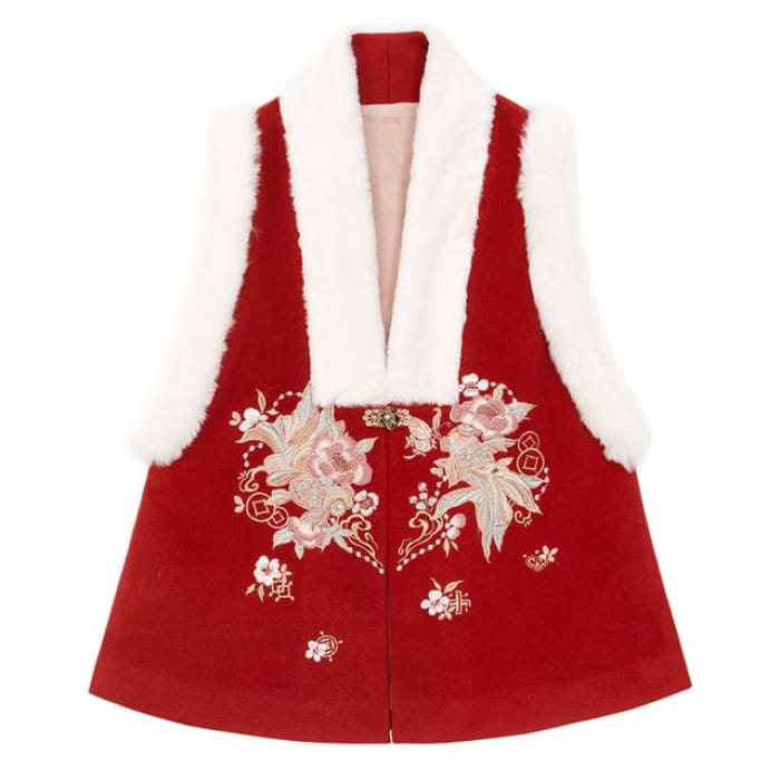 Animal Embroidered Fluffy Trim Hanfu Vest