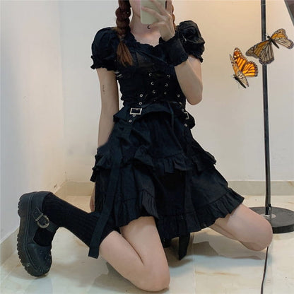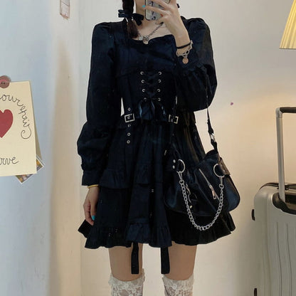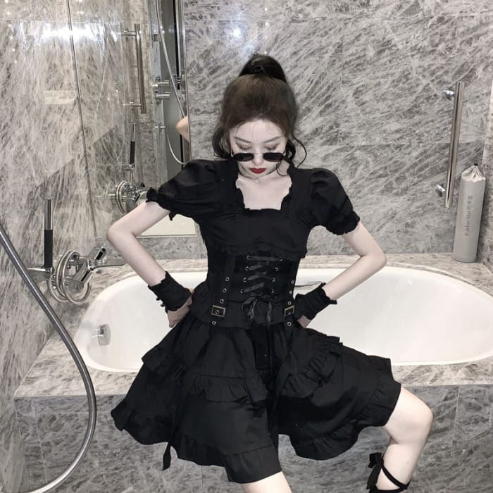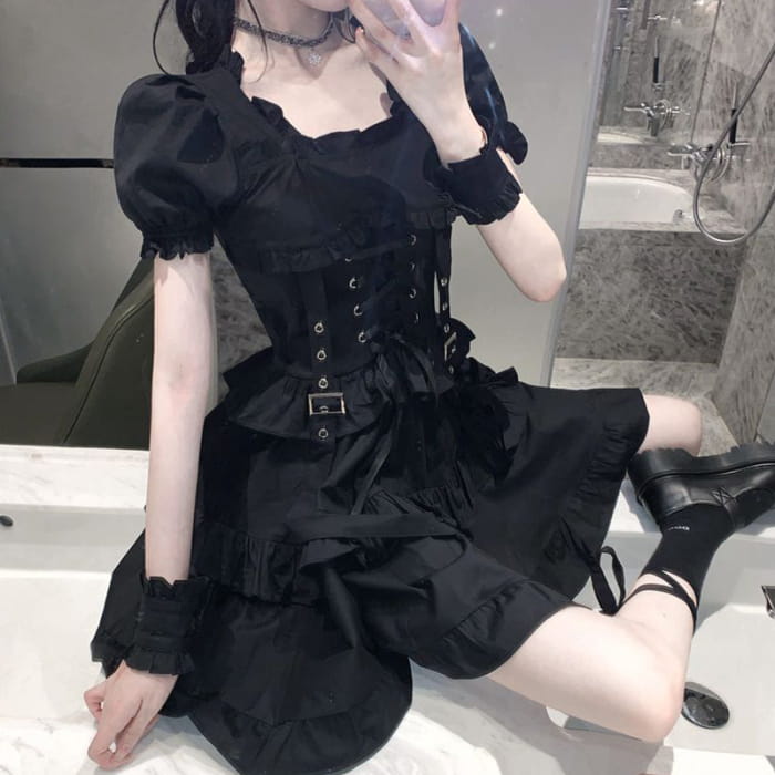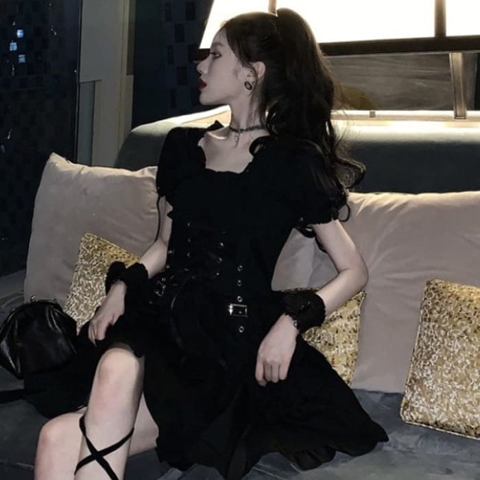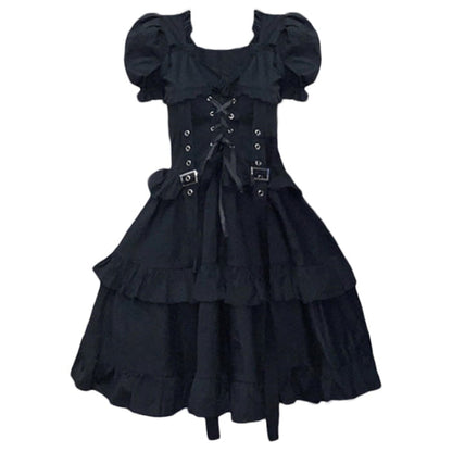 Retro Lolita Bubble Sleeves Bandage Girdle Dress