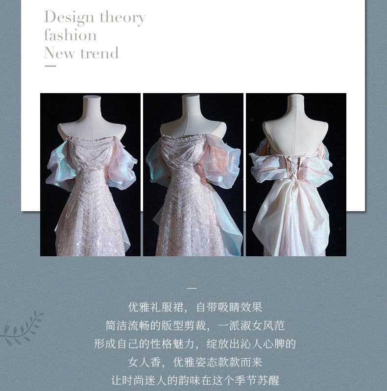 Beaded Sequin Off-Shoulder A-Line Evening Gown