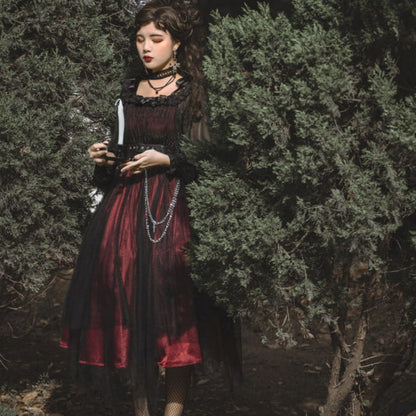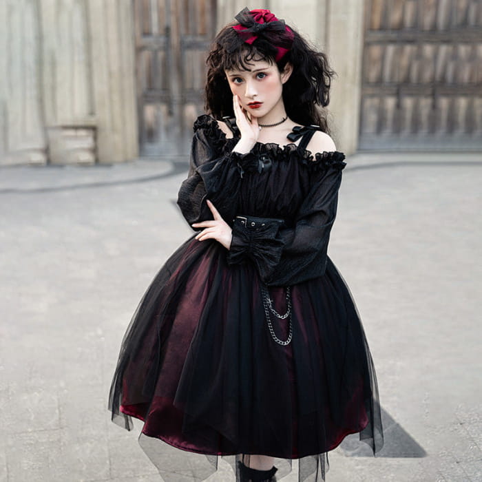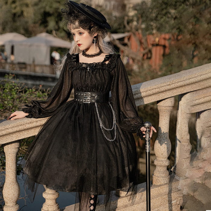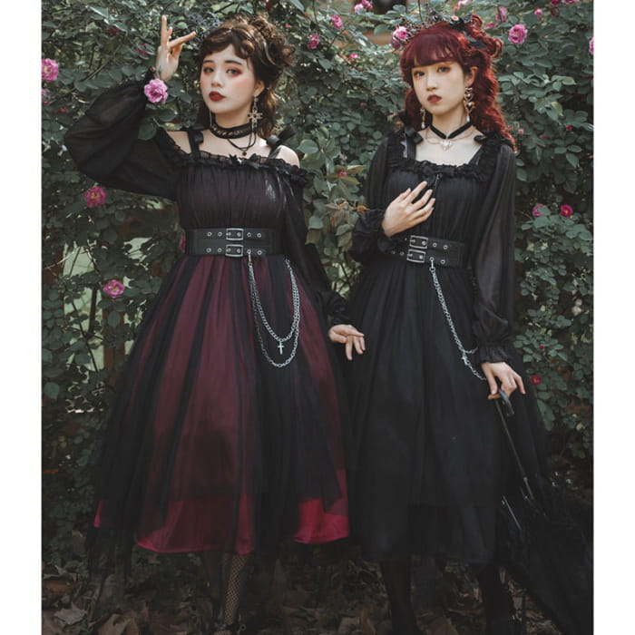 Black Chain Belt Long Sleeve Slip Lolita Dress