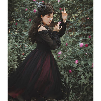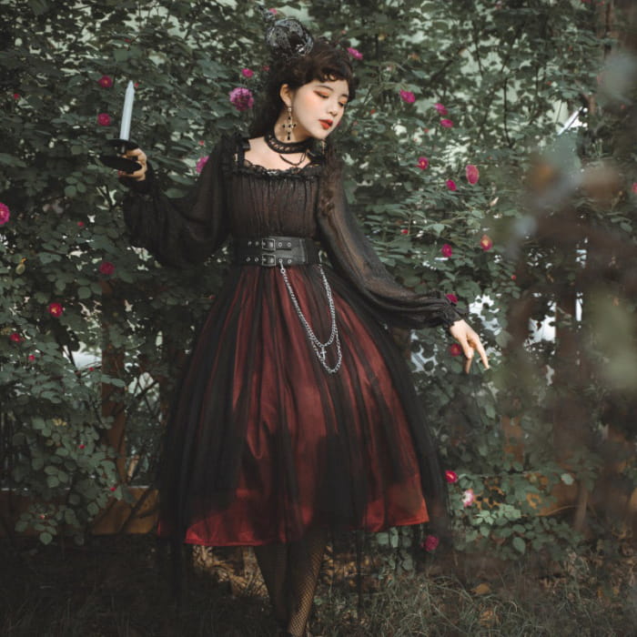 This elegant long sleeve slip Lolita dress features a black chain belt, adding a touch of sophistication to your wardrobe. The versatile design allows for multiple styling options, making it a perfect choice for any occasion. Step out in style with this must-have dress.