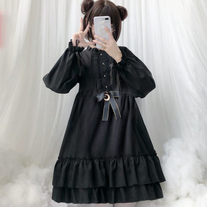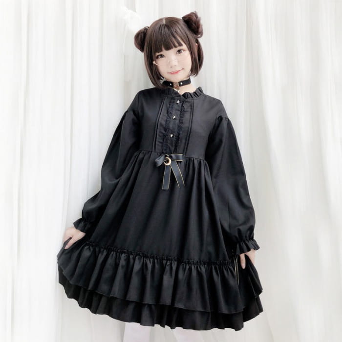Indulge in an elegant, gothic-inspired look with our Black Gothic Darkness Star Button Front Dress. Made with high-quality materials, this dress features a beautiful button front design and is adorned with stars for a touch of mystery. Perfect for any occasion, this dress is sure to make a statement.