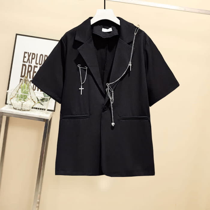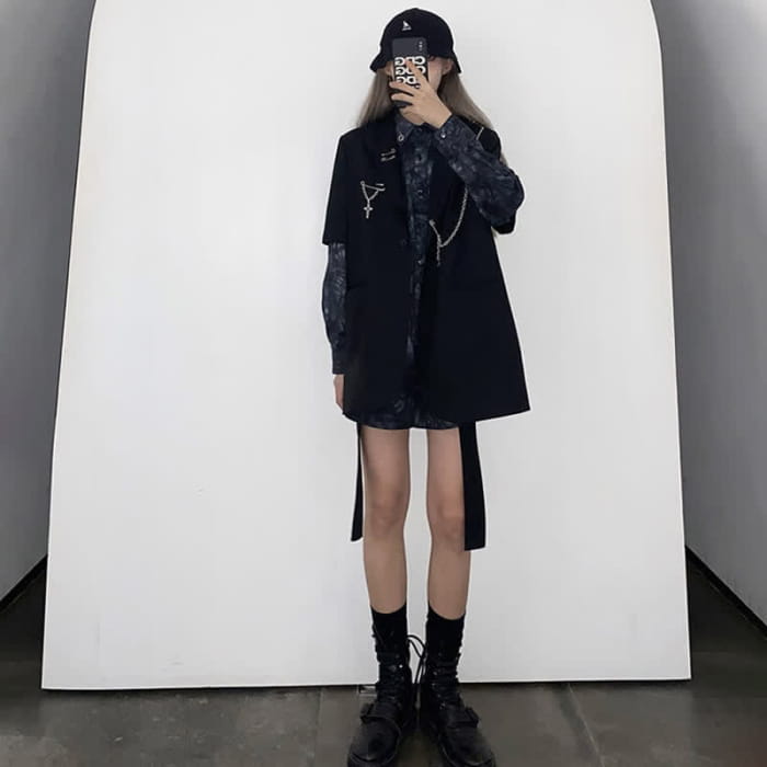 Black Gothic Lapel Blazer Tie Dye Chain Shirt Belted Pants