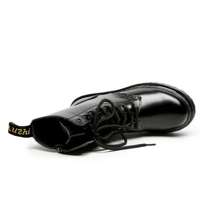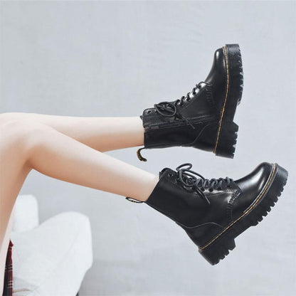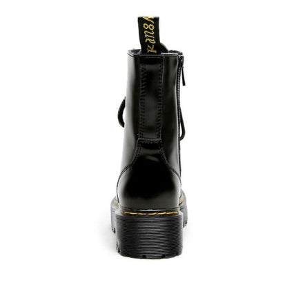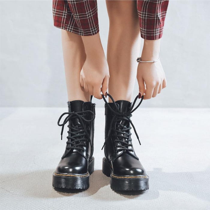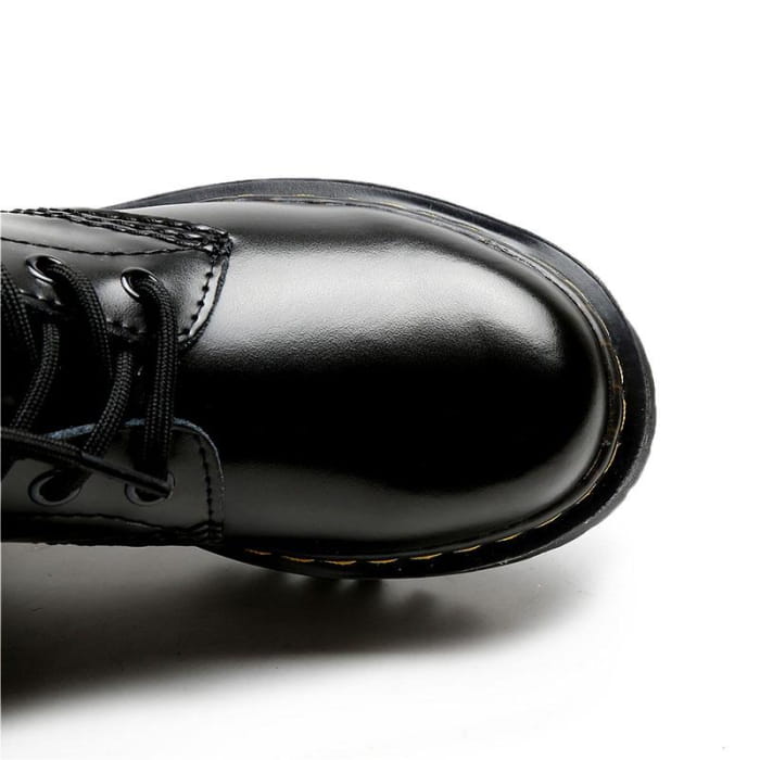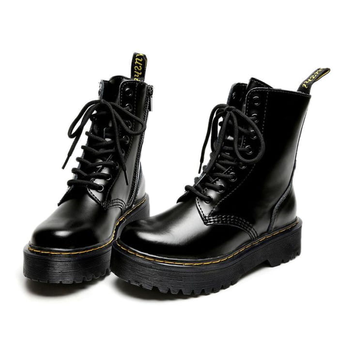 Elevate your shoe game with our Black Leather Platform Lace Up Martin Boots. Made with genuine leather, these boots feature a sturdy platform and laces for a secure fit. Walk with confidence and style in these elegant and versatile boots that will complement any outfit.
