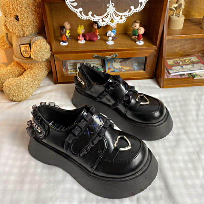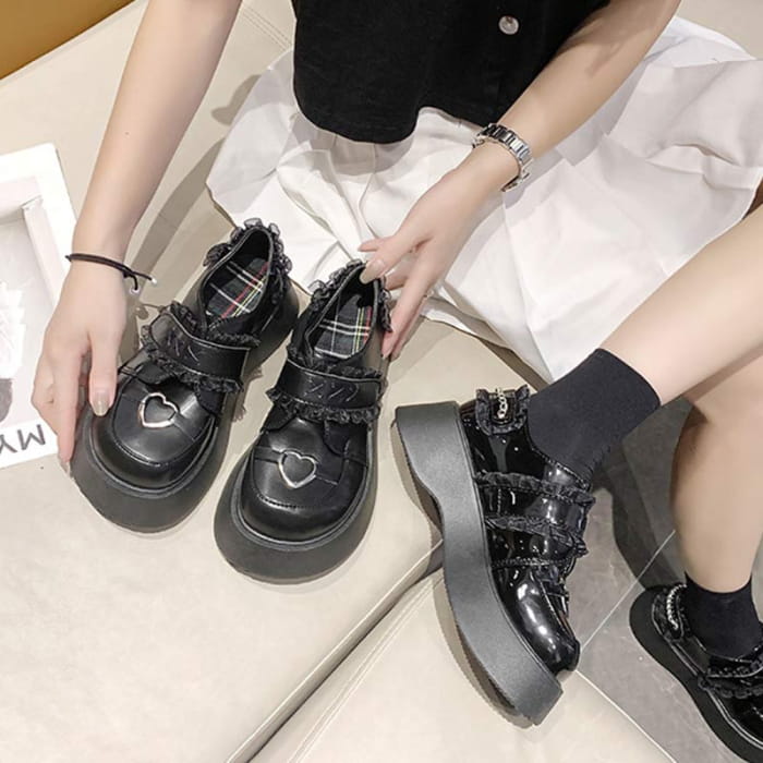 Introducing our elegant Black Platform Lace Lolita Mary Janes Shoes. Combined with a stylish platform design and lace detailing, these shoes are the perfect addition to any outfit. Made with comfort in mind, you'll look and feel fabulous in these shoes all day long. Experience the perfect blend of style and comfort with our Black Platform Lace Lolita Mary Janes Shoes.