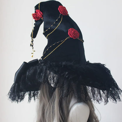 Add a touch of elegant mystique to your attire with our Black Witch Gothic Rose Decor Lace Hat. Its intricate lace design and subtle rose embellishments create a bewitching statement piece. Perfect for adding a touch of dark romance to any outfit.