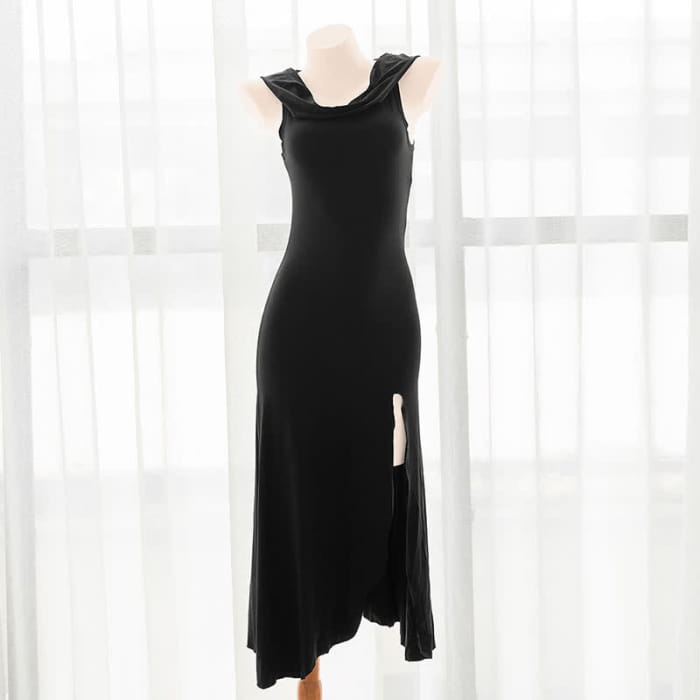 Black Witch Sleeveless Hooded Split Dress