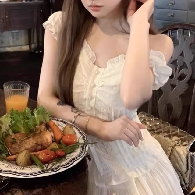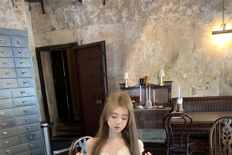 Blouse Skirt High Panel A-Line Slim / Lace Waist Fit Short-Sleeve Mini