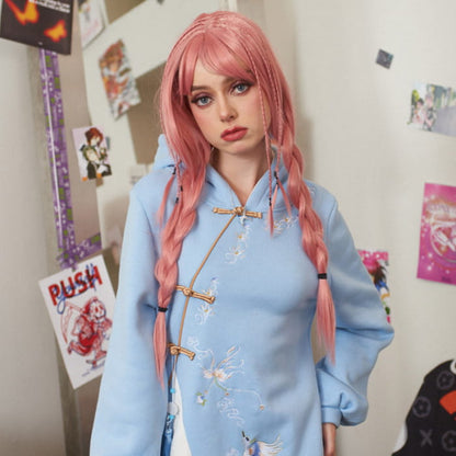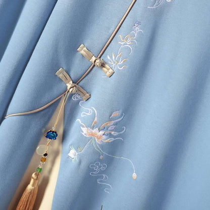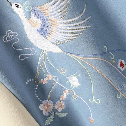 Blue Embroidery Loose Hoodie Vintage Sweatshirt Dress