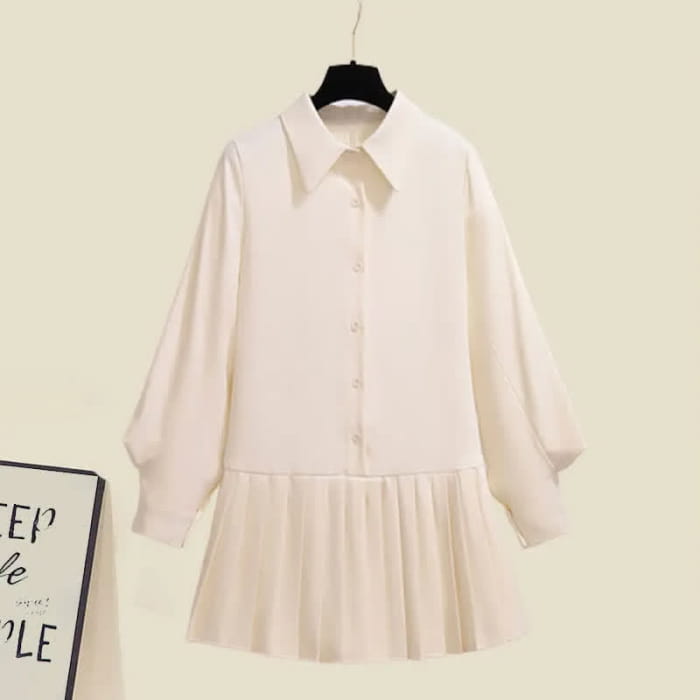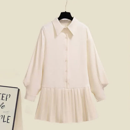 Boho Embroidery Fringed Vest Pleated Lapel Shirt Dress