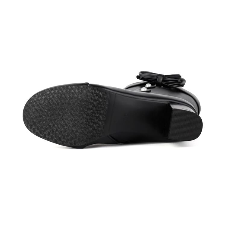 Boots Mid-Calf Faux Chunky Pearl Heel