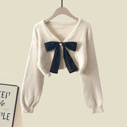 Bow Knot Cardigan Sweater Flouncing Slip Dress