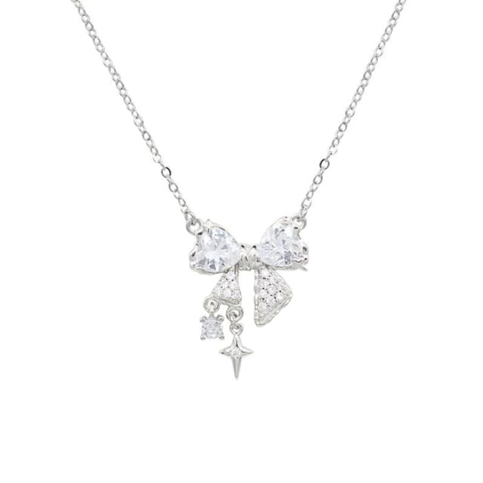 Bow Rhinestone Pendant Alloy Necklace / Stud Earring / Open Ring
