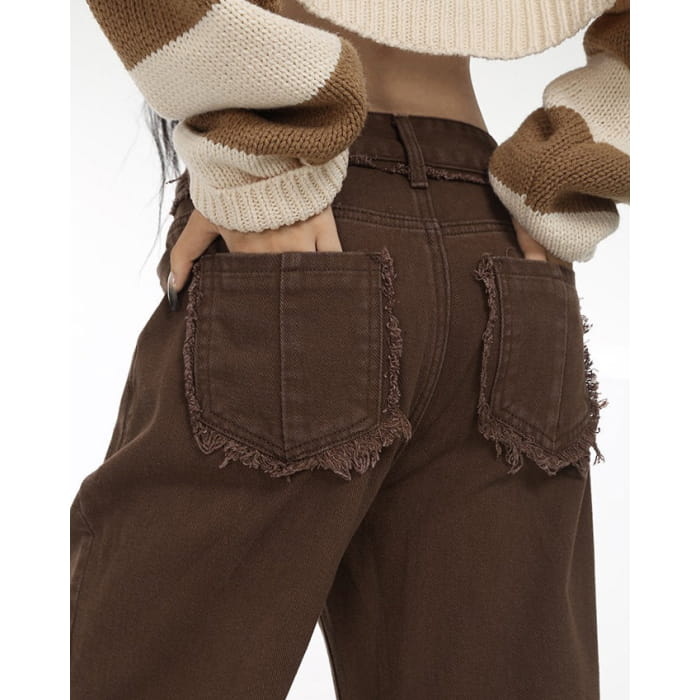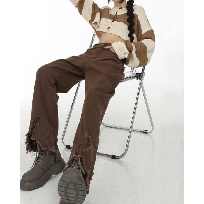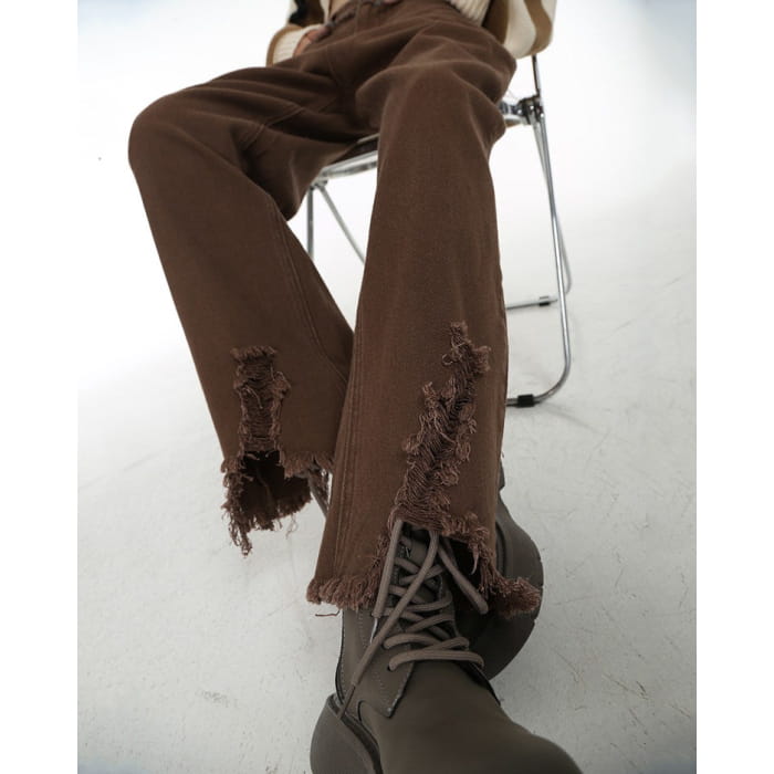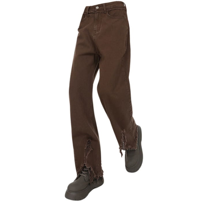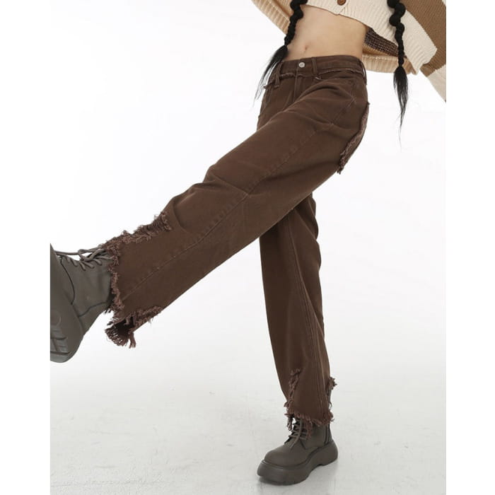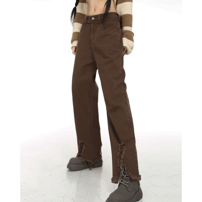 Effortlessly stylish and versatile, our Brown Straight Leg Distressed Jeans are the perfect addition to any wardrobe. Made with high-quality materials, these jeans offer a comfortable fit and timeless look. Dress them up or down for any occasion and elevate your fashion game.
