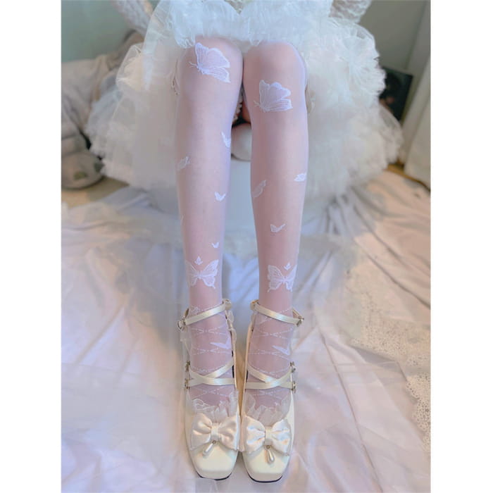 Enhance your style and confidence with these Butterfly Print Lolita Silk Stockings. The intricate butterfly design adds an elegant touch to your attire while the silk material provides ultimate comfort. Perfect for any occasion, these stockings will elevate your fashion game.