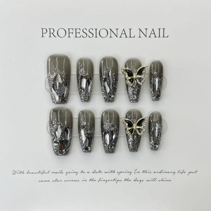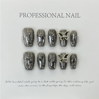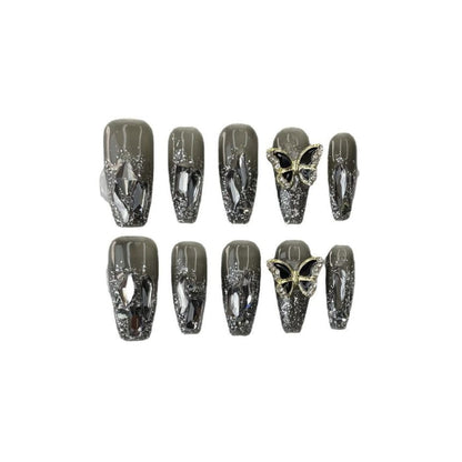 Butterfly Rhinestone Faux Nail Tips