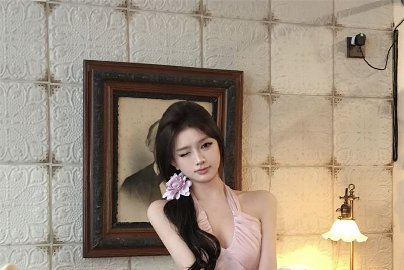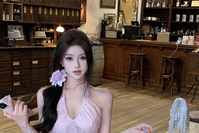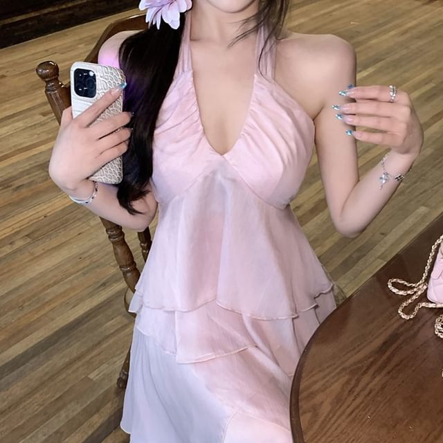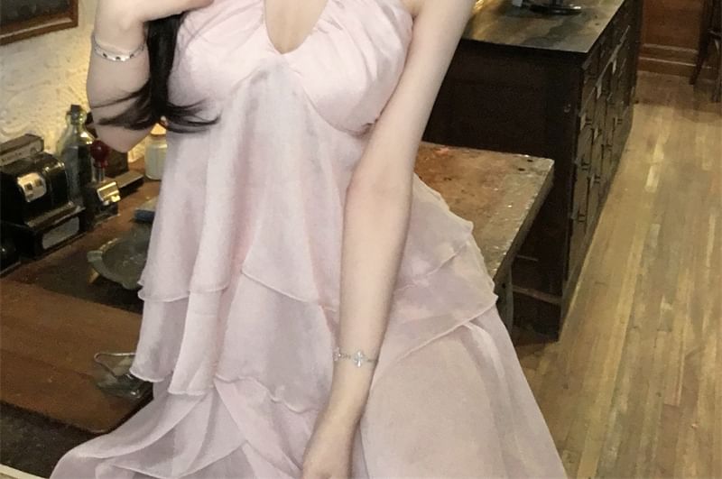 / Cami V-Neck Plain Skirt A-Line Top Flowy Maxi