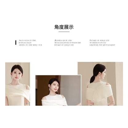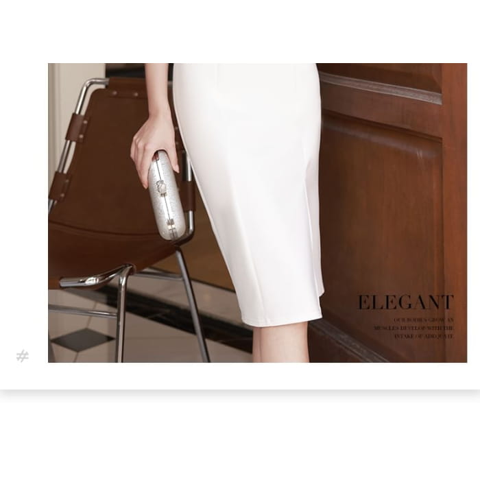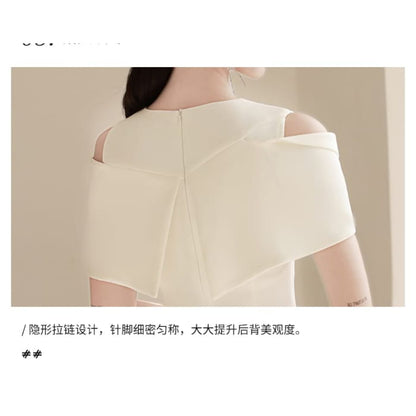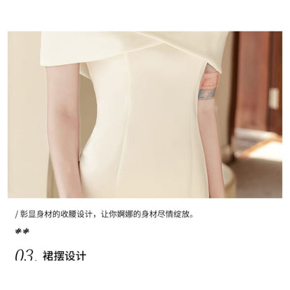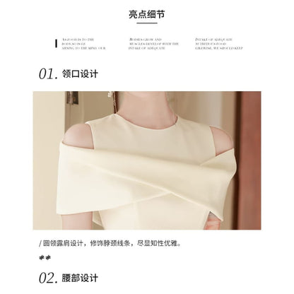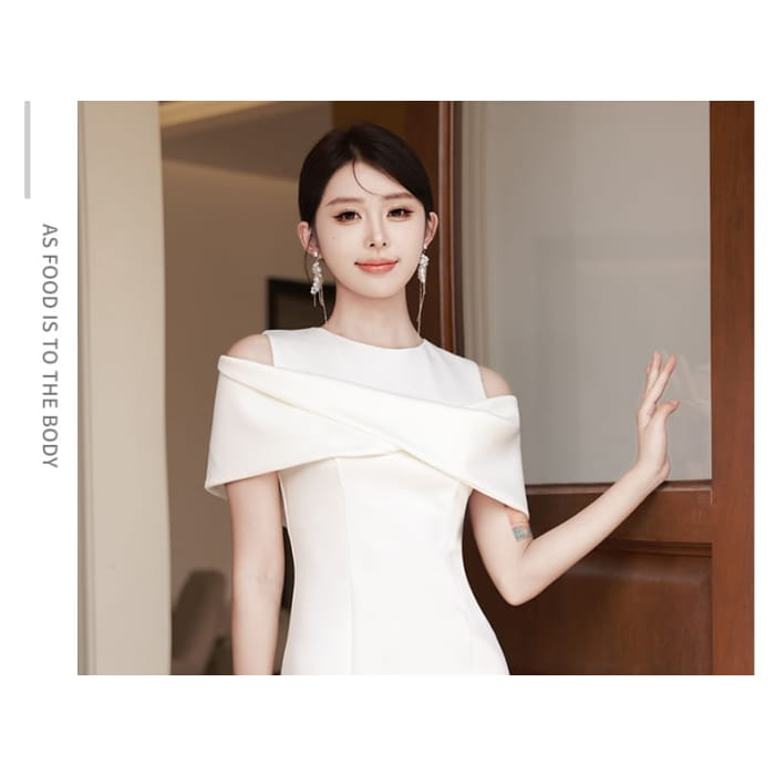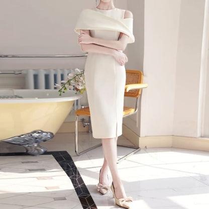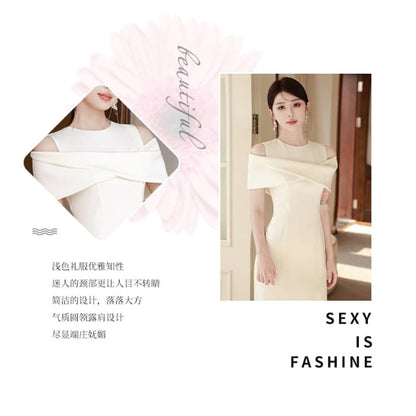 Cap-Sleeve Cold-Shoulder Plain Slit Midi Sheath Cocktail Dress