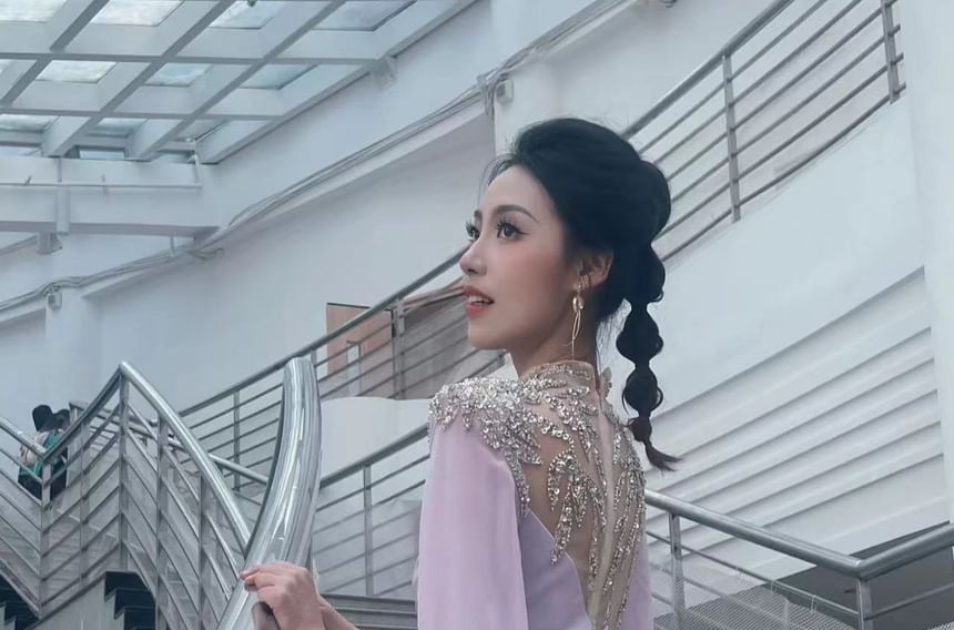 Cape-Sleeve Sequin Panel A-Line Evening Gown
