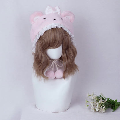 Cartoon Bunny Bear Ears Lace Lolita Plush Hat