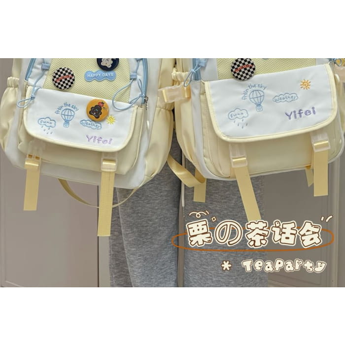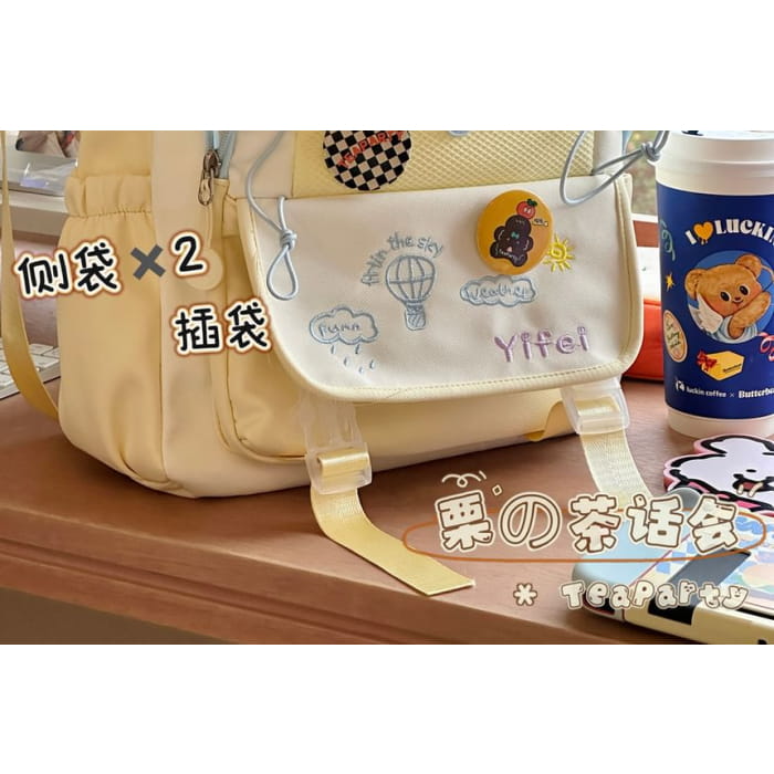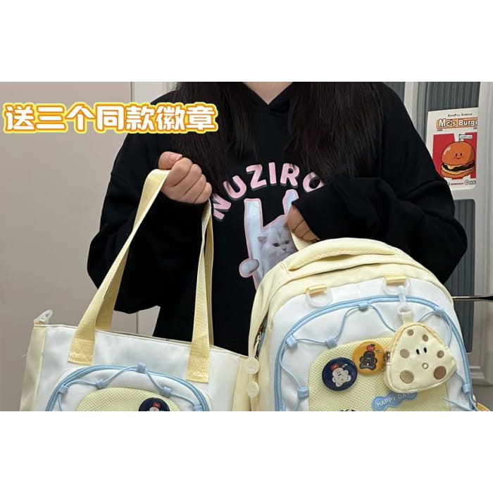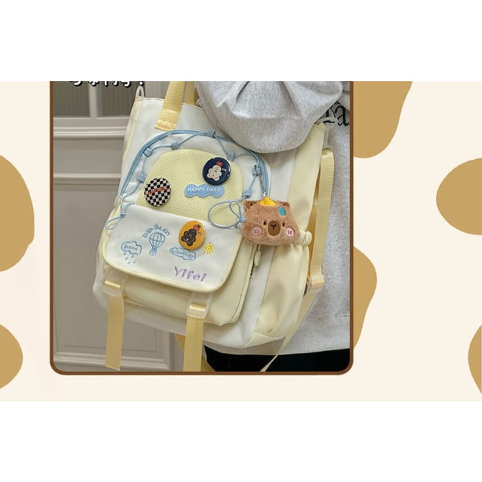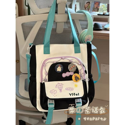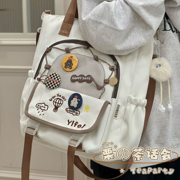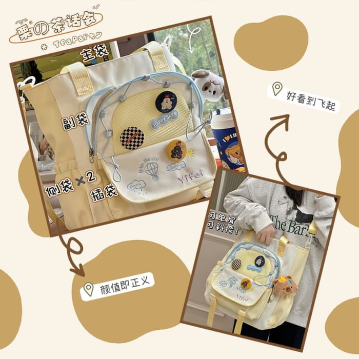Cartoon Embroidered Tote Bag / Zip Backpack