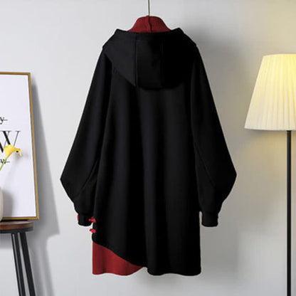 Cartoon Fox Buckle Black Hooded Sweatshirt Dress