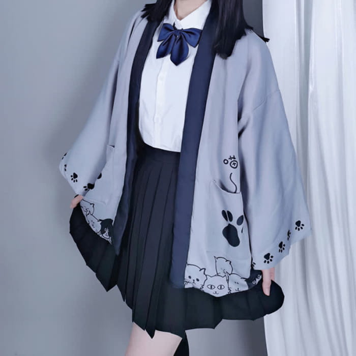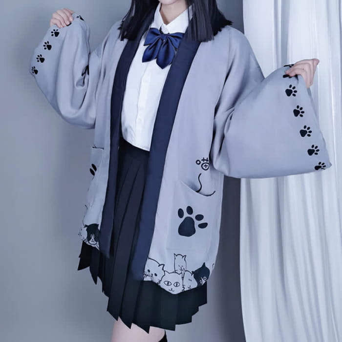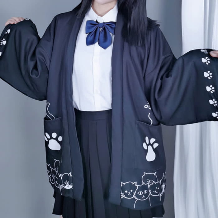 Cartoon Kitty Plush Cardigan Kimono Outerwear