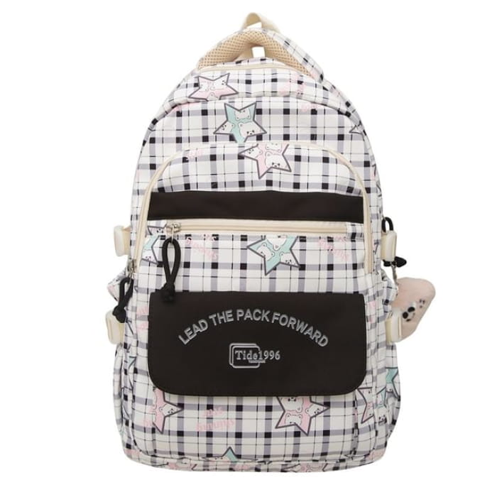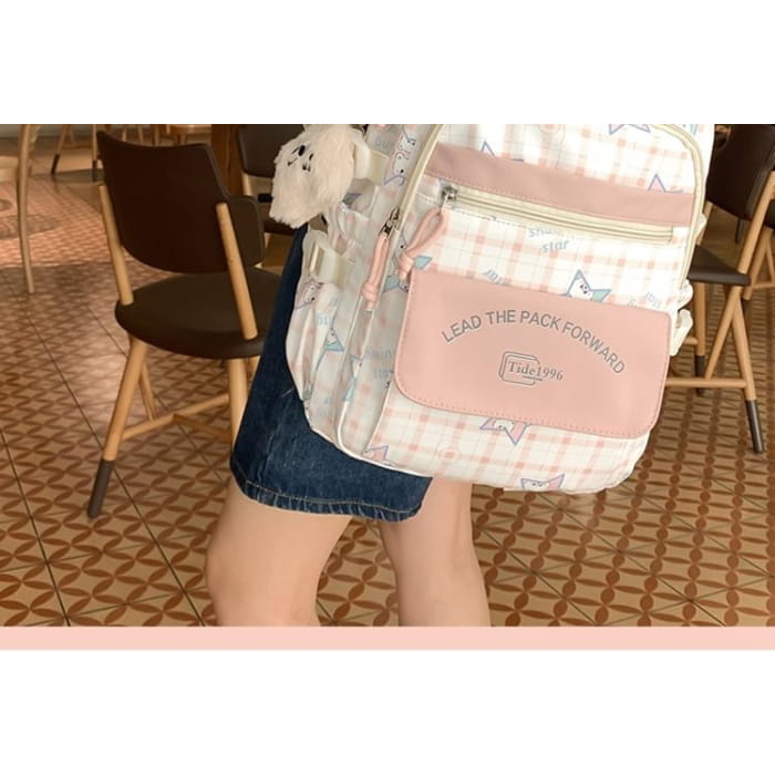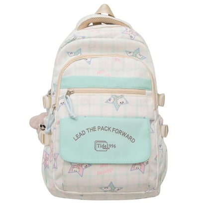 Cartoon Print Multi-Pocket Backpack / Bag Charm / Set