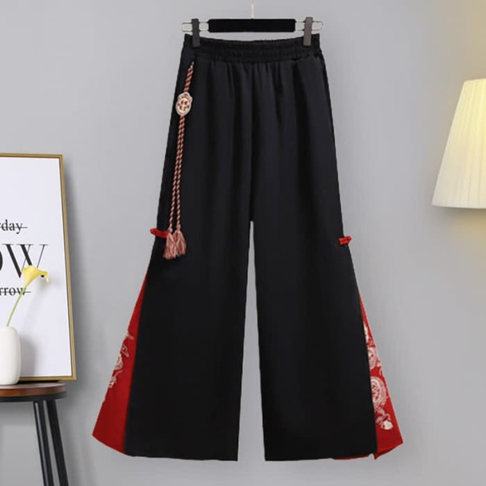 Casual Crane Embroideriy Sweater Hoodie Dragon Pattern Split Pants