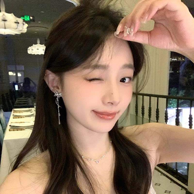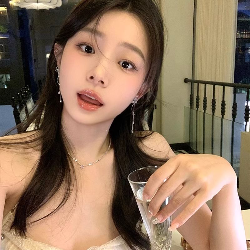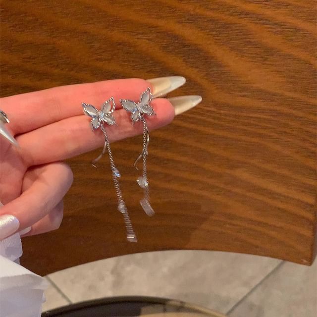 Cat Faux Alloy Dangle Eye Butterfly Stone Earring