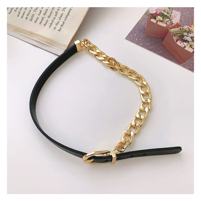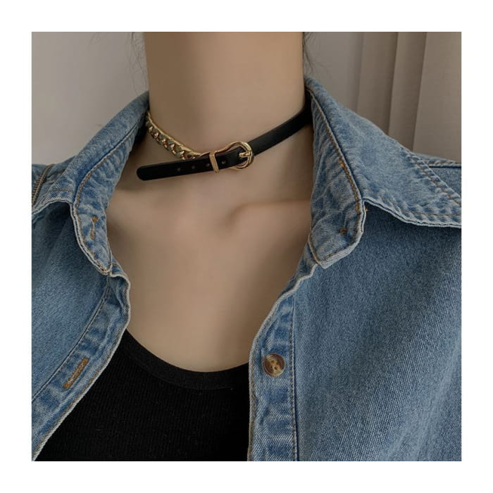 Chain Faux Leather Buckle Choker