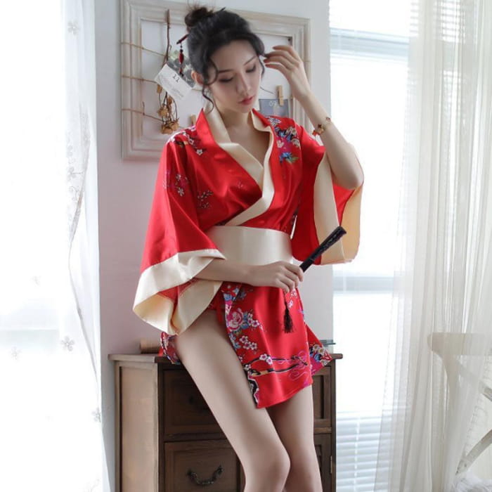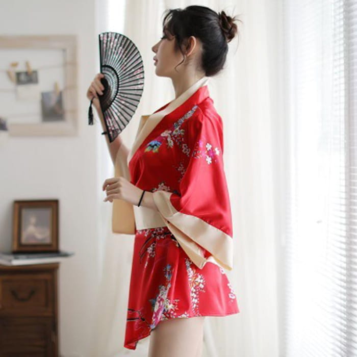 Charming Red Kimono Floral Cosplay Lingerie Dress