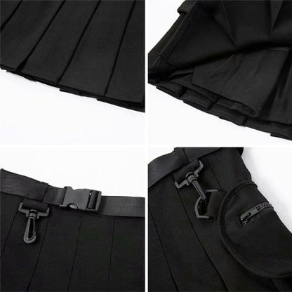 Introducing our elegant Chic Black Pocket Belted A-line Pleated Skirt. This skirt features a flattering A-line cut, pocket detailing, and a belted waist for a sophisticated touch. Perfect for any occasion, it effortlessly combines style and convenience. Elevate your wardrobe and turn heads with this must-have piece.