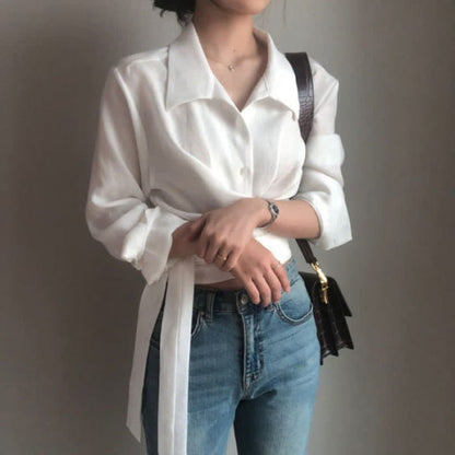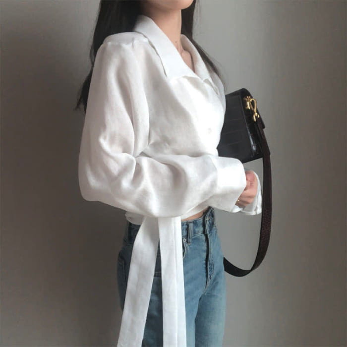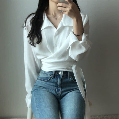 Elevate your style with our Chic Blue Cross Lace Up Lapel Shirt. The unique lace up design adds a touch of elegance to this classic shirt, while the cross pattern adds a modern twist. Perfect for any occasion, this shirt is a must-have for any fashion-forward individual.