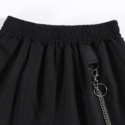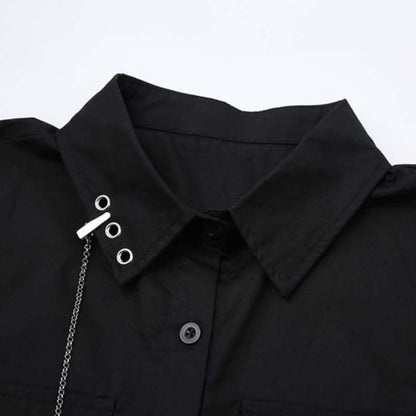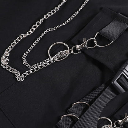 Chic Pocket Lapel Tie T-Shirt Casual Chain Cargo Shorts Pants