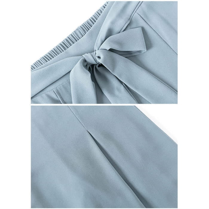Chic Printed T-Shirt Chiffon Lace Up Split Pants Set