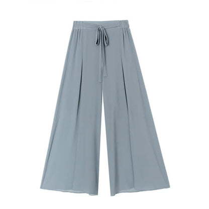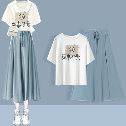 Chic Printed T-Shirt Chiffon Lace Up Wide Leg Pants Set